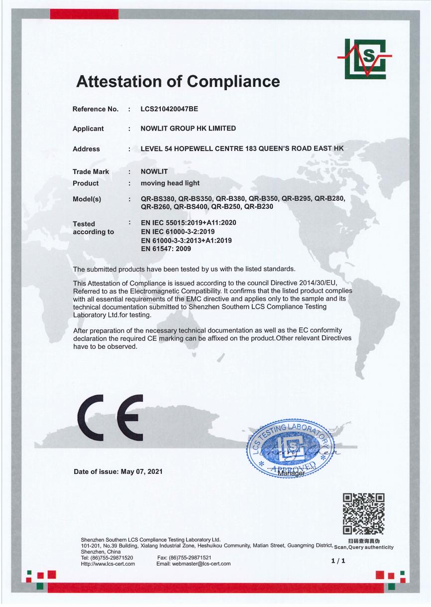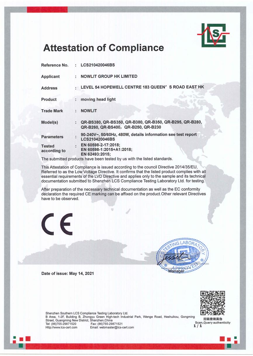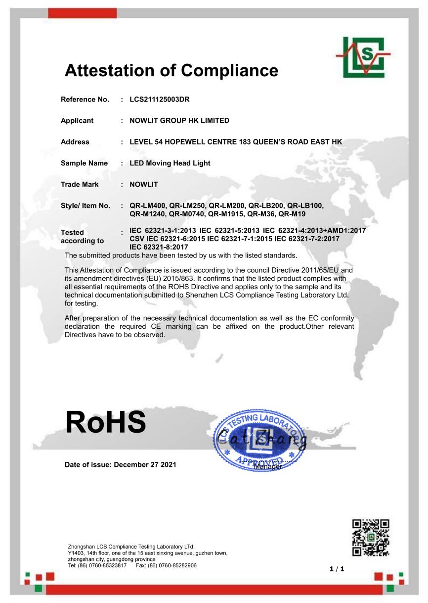 • LED Moving Head Light -RoHS Certificate