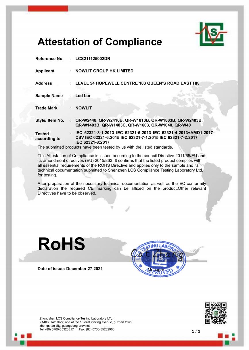 • LED Bar Light - RoHS Certificate