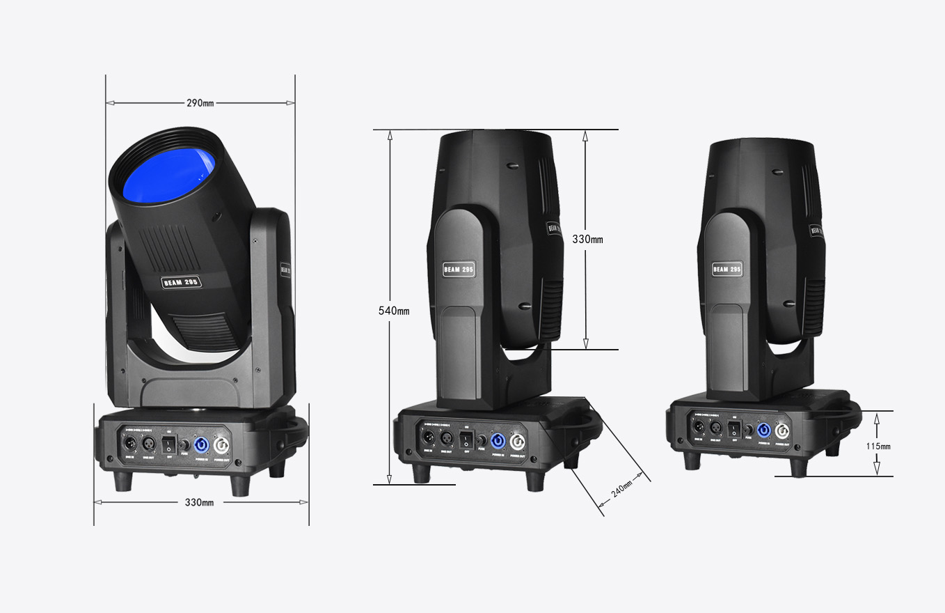 Mini 380W OSRAM Beam Moving Head Light features an OSRAM 371 light source,delivering a highly concentrated, sharp beam with strong brightness and excellent penetration.It includes a 14-color wheel and a fixed gobo wheel,equipped with 8-facet and 24-facet prisms,and supports strobe,frost,and rainbow effects.Built with a flame-retardant,high-temperature-resistant nylon housing,it is ideal for stage productions,bars,nightclubs,and various entertainment venues.