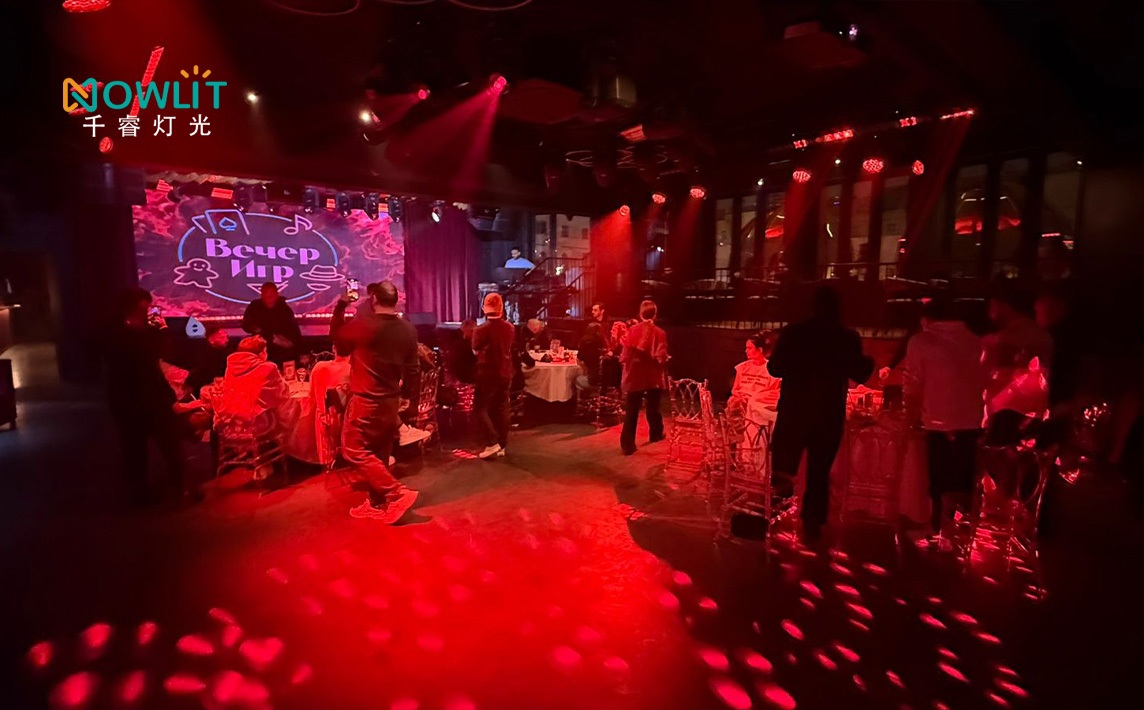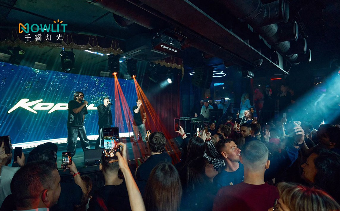 Russia Bar Lighting Project adopted NOWLIT professional lighting fixtures, providing powerful and precise illumination for dynamic performances and high-energy music environments. The system covers the stage, DJ area, dance floor, and audience zones. High-brightness lighting creates clear, three-dimensional beam layers throughout the space, reinforcing the visual focus on the stage and DJ while enhancing overall depth and spatial impact.